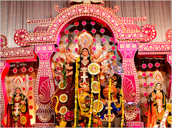 Snippet: Durga puja at New Delhi Kalibari started in 1925. mainly by the Indian Babus who had relocated from Kolkata to Delhi with the British administartion. Kali Bari continues to follow the traditional ekchalar thakur and sholar kaaj.