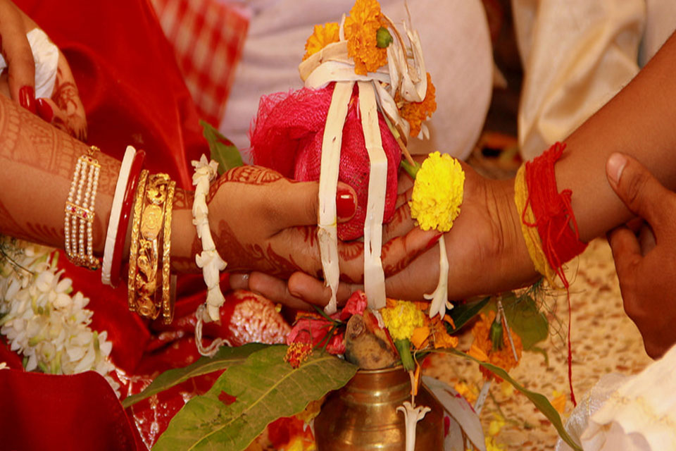 Snippet : The Beeye or the main Bengali wedding has quaint rituals like the Saat paak in which the bride is taken around the groom seven times thus firmly securing the two together, the Subho Dhristi in which the bride coyly peeps at the groom from behind paan leaves and the Mala badal in which the bride and the groom exchange floral garlands thrice as the first step towards mutual acceptance.