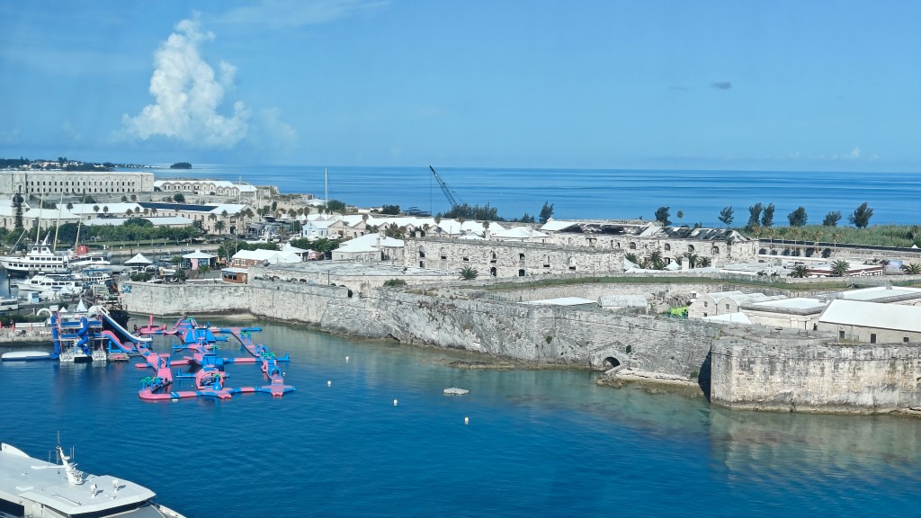 We docked at the Royal Naval Dockyard. Once a formidable British naval base after they were unceremoniously booted out of North America, it now plays host to cruise ships instead of battle cruisers. Think of it as the colonial version of “I’ll be back!”—except the British came back with museums, not muskets.
